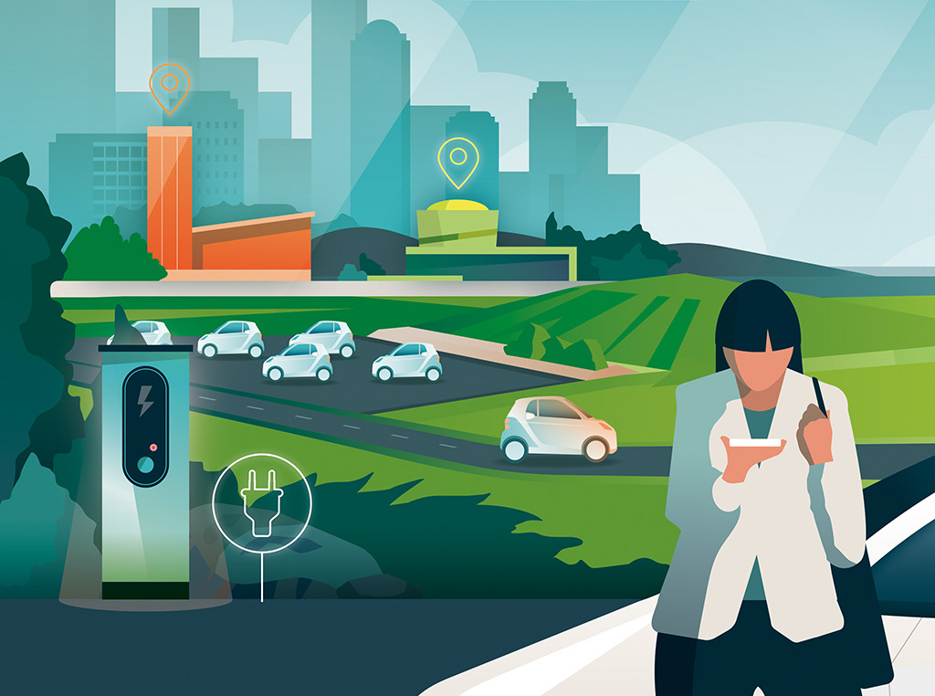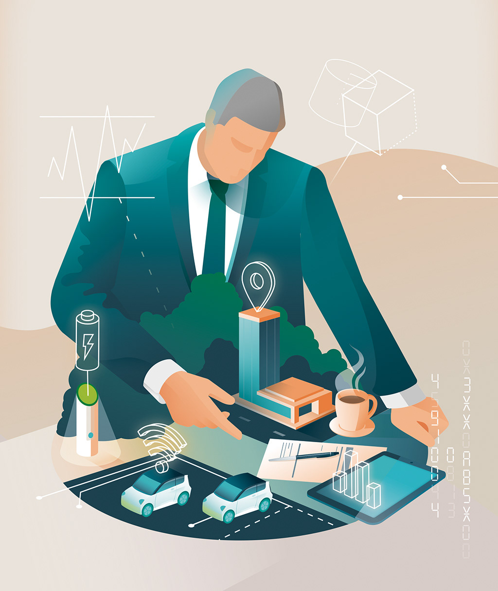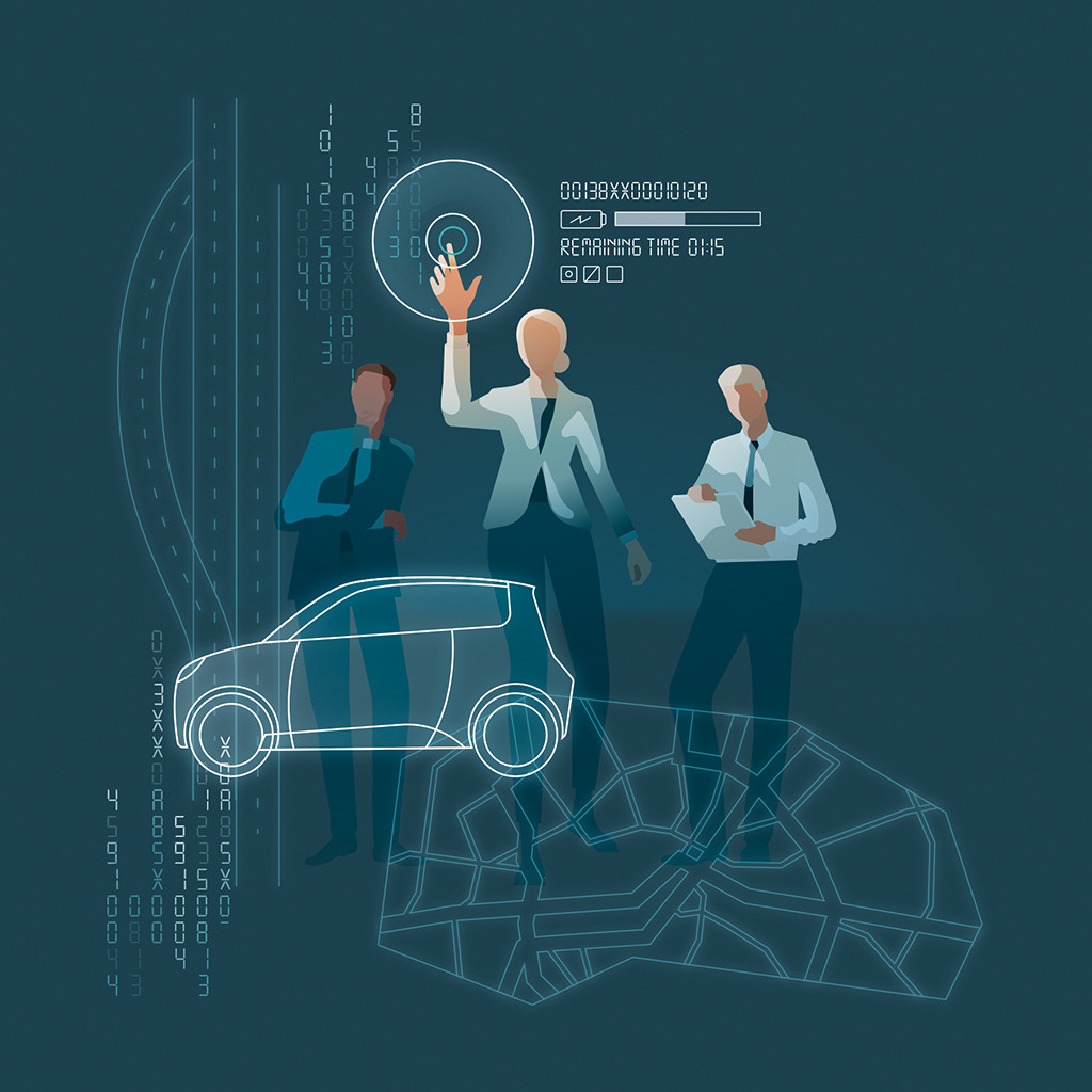 "Company Cars" Fuhrparkmanagement, E-Mobility, Connected Cars in|pact Media Verlag, 2017 Cover, Editorialillustration
